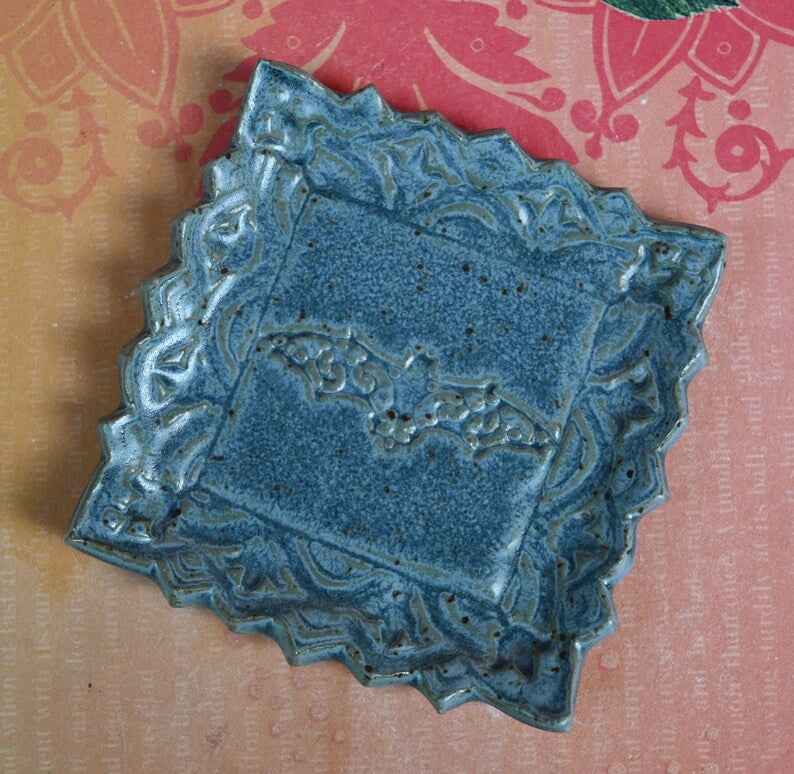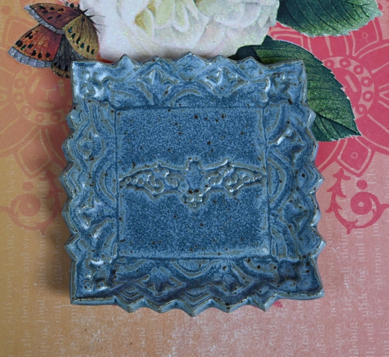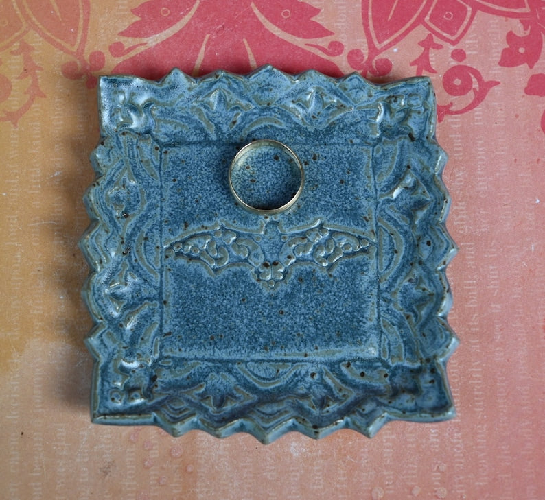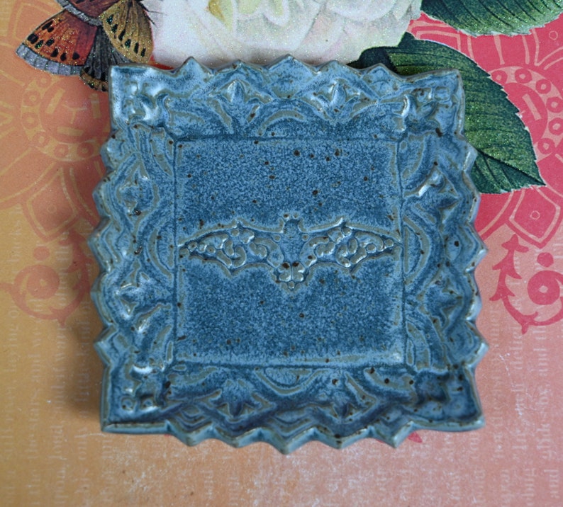 Bat teaspoon rest. Halloween jewelry holder. Tea light holder. Ring holder. Ceramic bat dish. Chopstick rest. Tea bag rest. Trinket dish.
