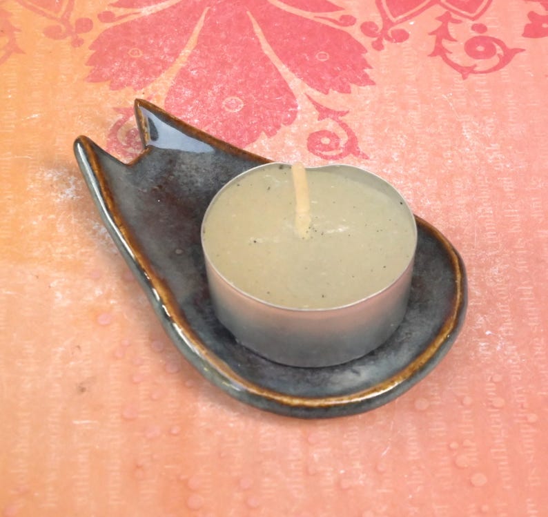Cat ring holder. Teeny cat trinket dish. Teaspoon rest. Coffee spoon rest. Pill holder. Chop stick rest. Tea light holder. Knife holder