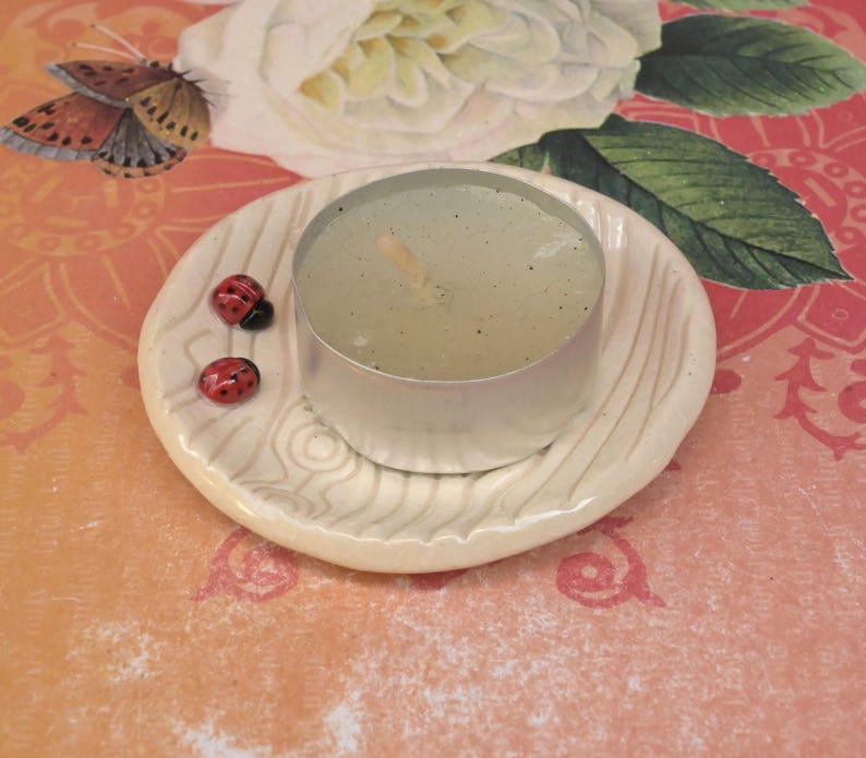 Ladybug ring holder. Tea bag rest. Teaspoon rest. Coffee spoon rest. Tea light holder. Trinket dish. Chopstick rest. Pill holder