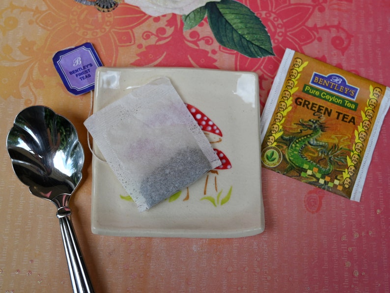 Mushroom tea bag rest. Spoon rest. Magic mushroom ring holder. Jewelry holder. Trinket dish. Ring holder. Alice in Wonderland
