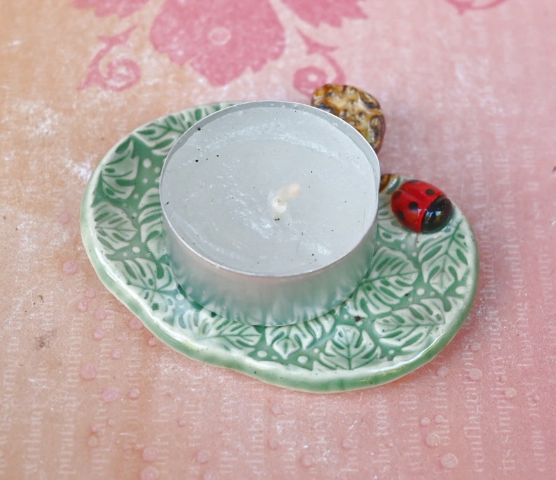 Pumpkin Ladybug ring holder. Monstera leaf pumpkin. Teaspoon rest. Ring holder. Trinket dish. Chopstick rest. Tea light holder. Harvest dish