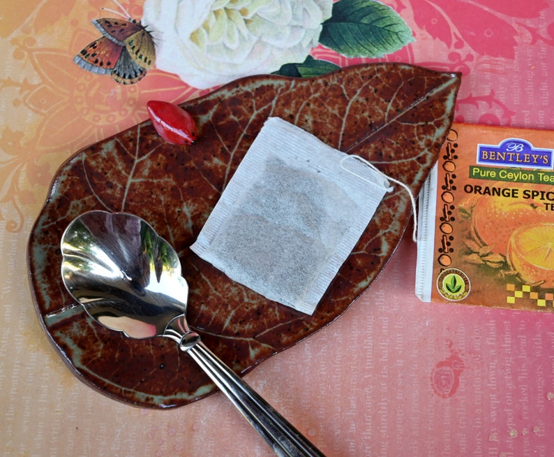 Spoon rest. Soap holder. Leaf spoon rest. Leaf with red cardinal. Tea bag rest. Trinket dish. Ring holder. Jewelry holder. Soap dish